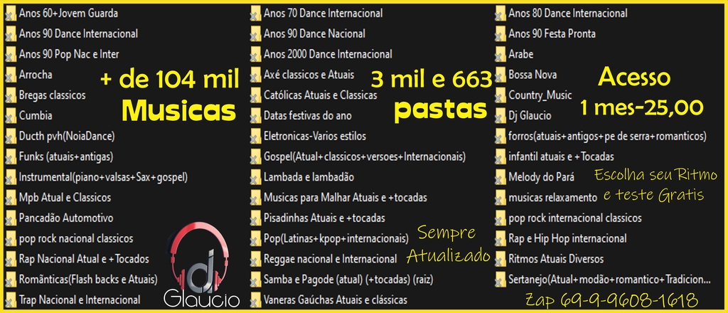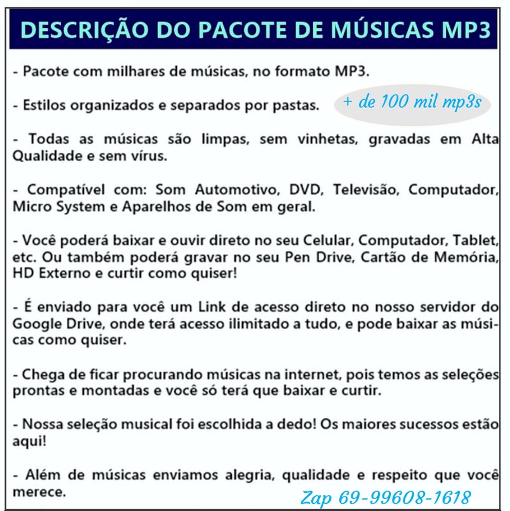 link v´´alido por 30 dias com mais de 100 mil mp3s!separadas por gêneros e atualizadas